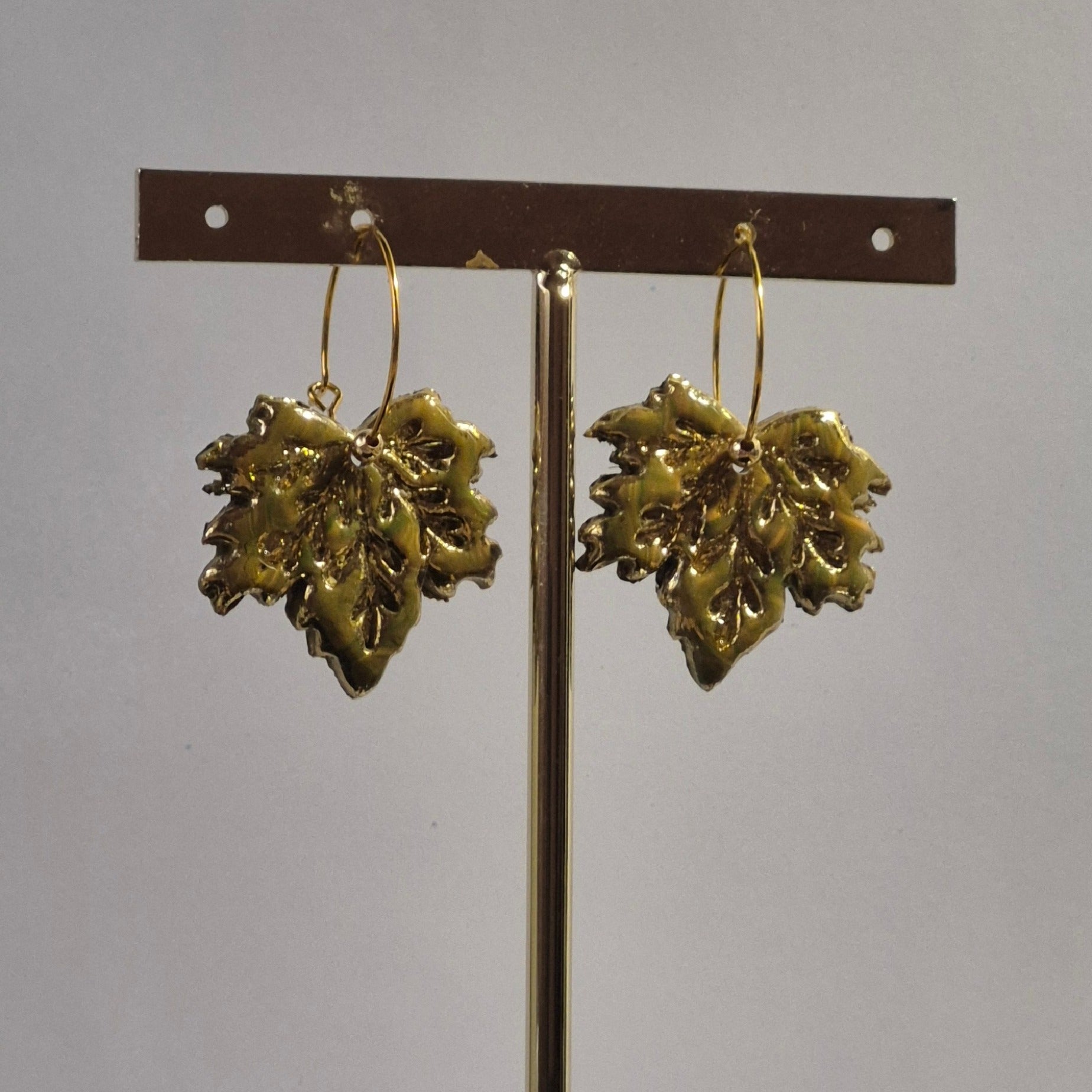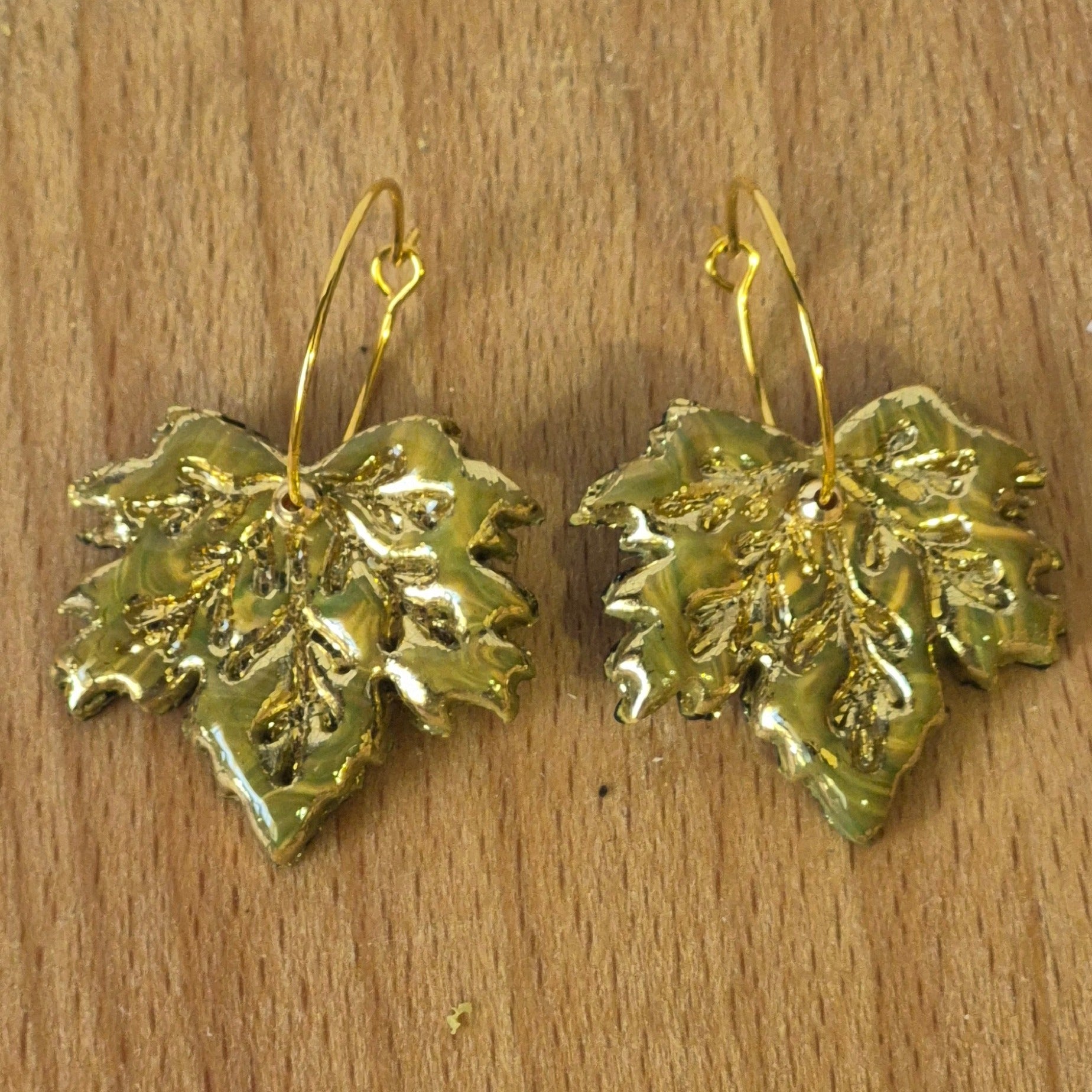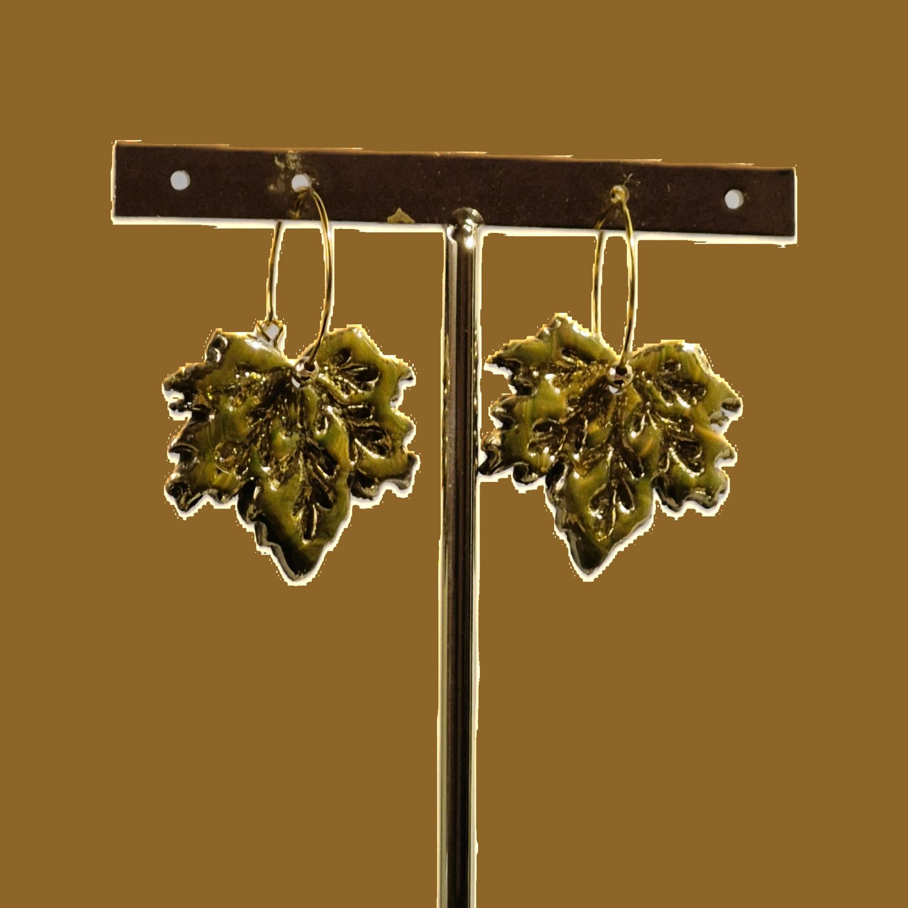 Los pendientes “Hojas Doradas” están elaborados en arcilla polimérica con un acabado metalizado en tono oro brillante que imita la textura natural de la hoja. Su diseño elegante y llamativo los convierte en el accesorio perfecto para ocasiones especiales o para darle un toque sofisticado a tu look diario.