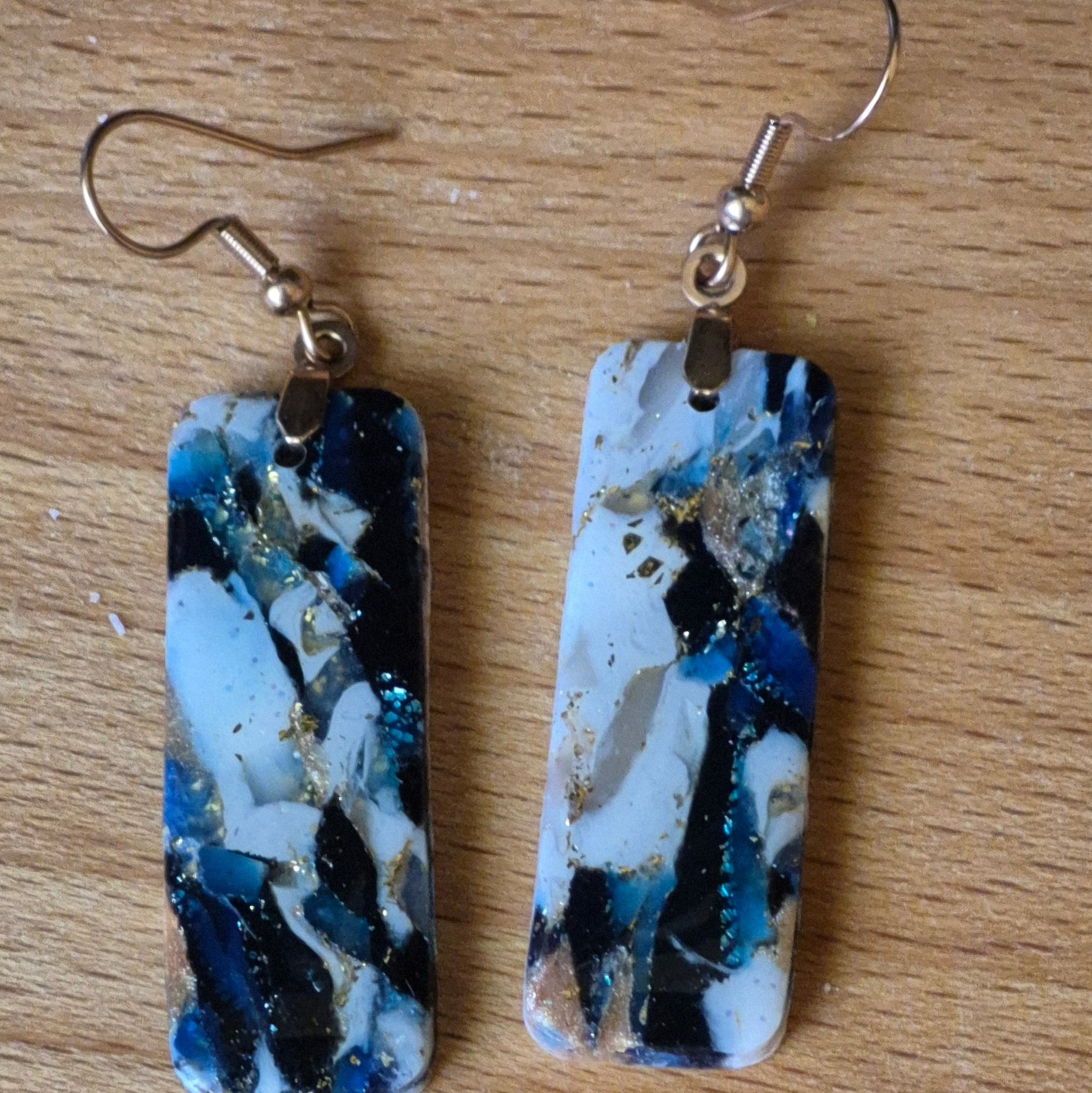 Un diseño que captura la esencia de la noche: tonos negros profundos, blancos suaves y destellos dorados que evocan un cielo estrellado. Hechos a mano en arcilla polimérica, con un acabado elegante y único que convierte cada pieza en irrepetible. Livianos, modernos y versátiles, perfectos para realzar cualquier look con un toque artístico y cómodo.